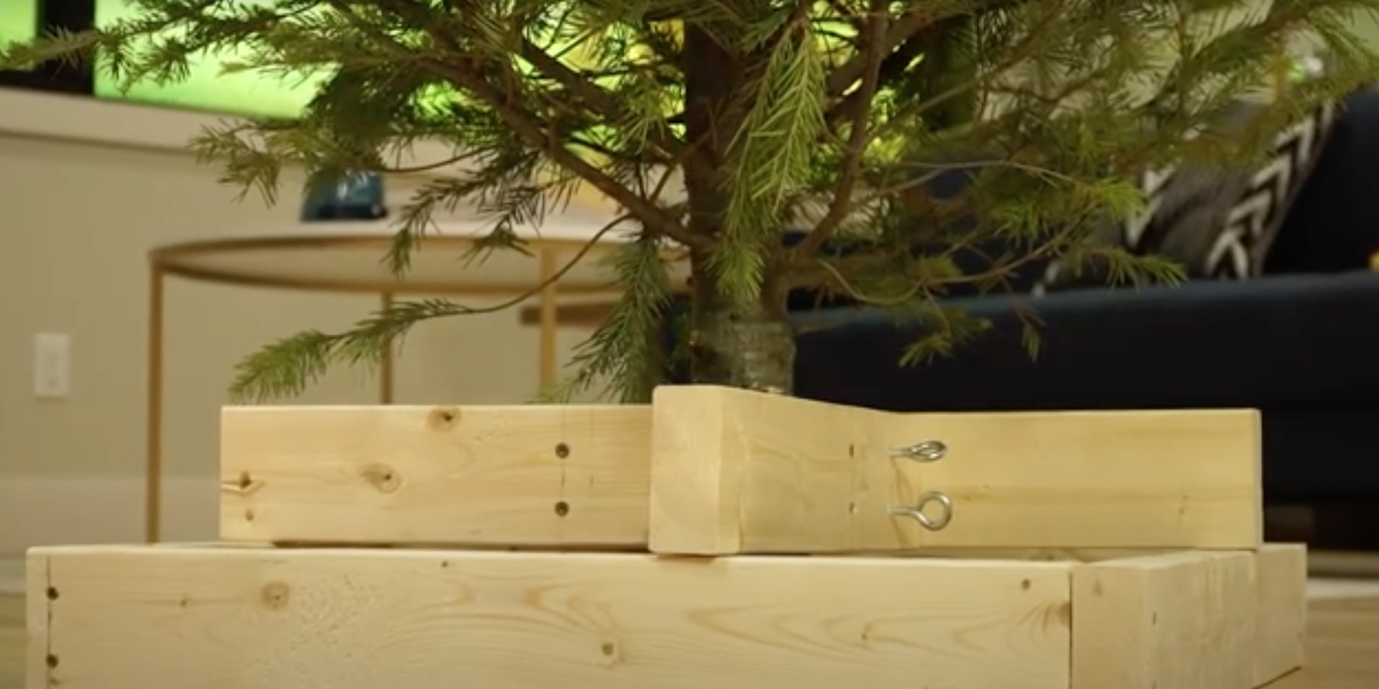 Составьте их так, чтобы между ними образовался квадрат. Шириной он должен быть чуть больше диаметра ствола вашей ёлки.