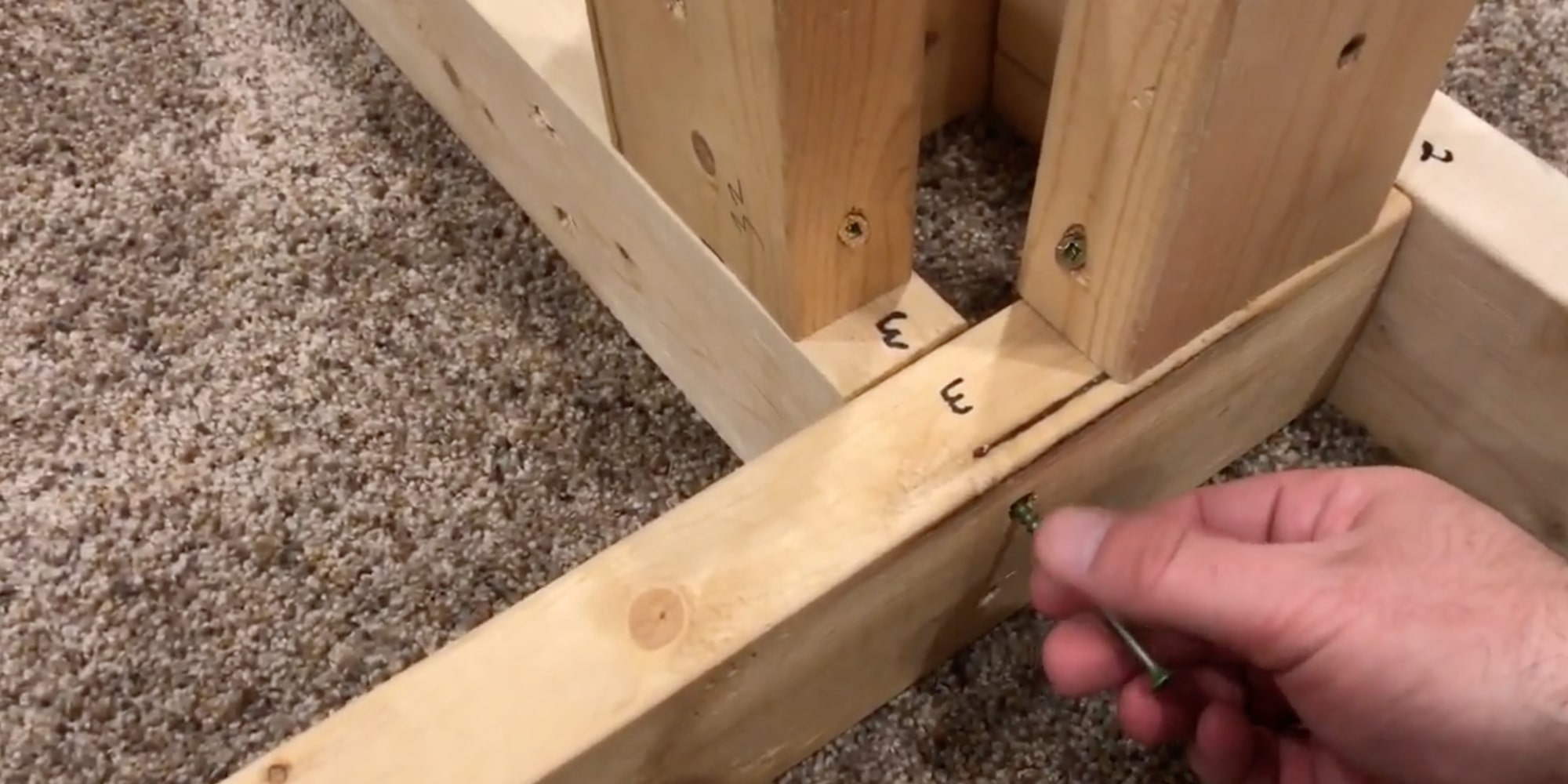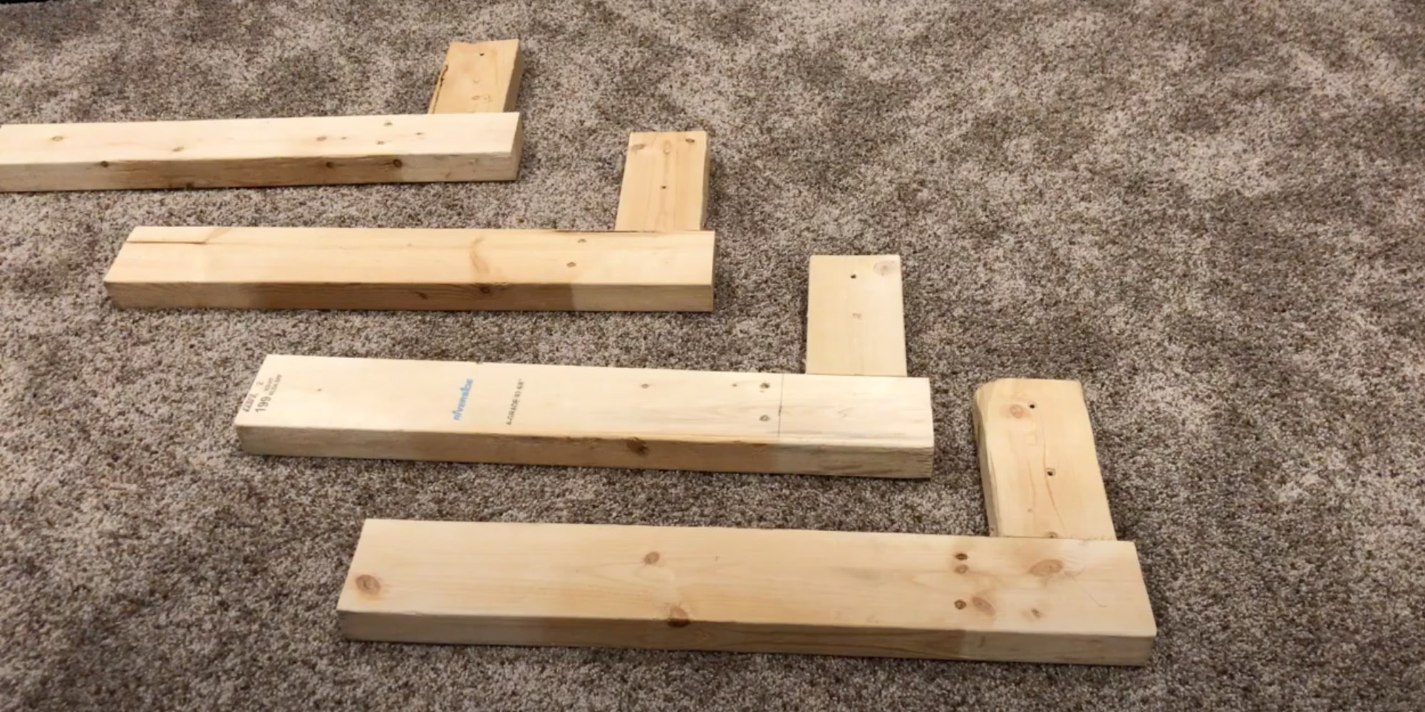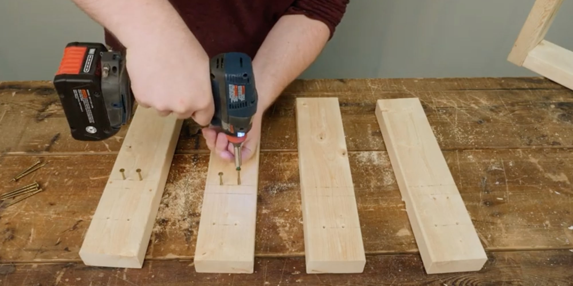 Скрепите доски друг с другом с помощью саморезов, чтобы получились четыре одинаковые детали, как на картинке ниже.