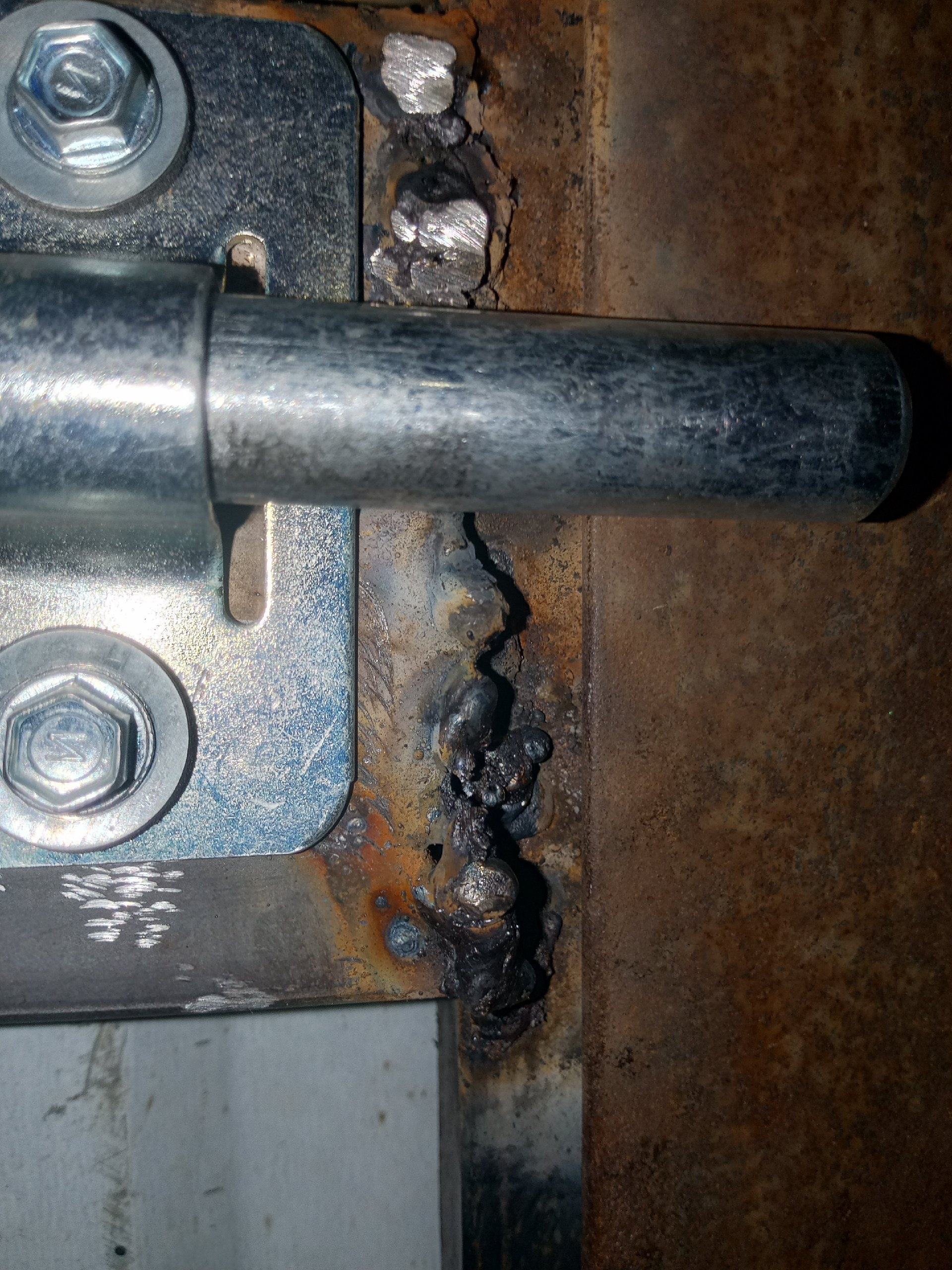 Тут была щель миллиметров 8, пришлось наращивать металл, с помощью электродов.